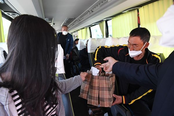 这些返岗复工人员,包含电焊工、物流管理员、保洁员、育婴员等多个工种。长春市和榆树市人社部门还为每一位复工人员准备了包含检测盒、防护服、口罩、消毒纸巾等防疫物资与旅途食品的“爱心复工礼包”。