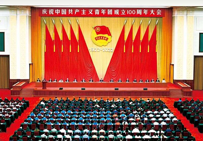 2022年5月10日,庆祝中国共产主义青年团成立100周年大会在北京人民大会堂隆重举行。新华社记者 翟健岚/摄
