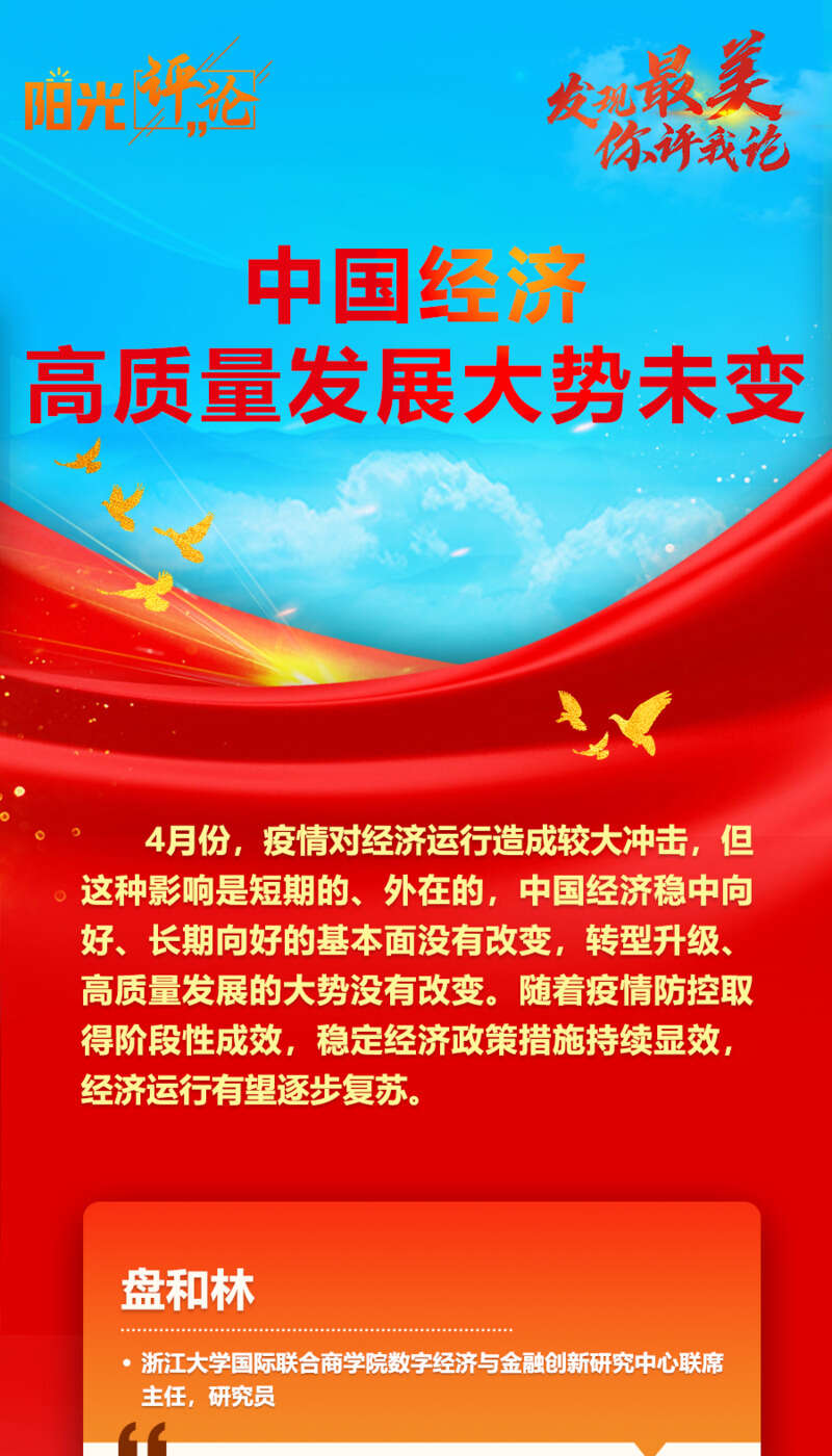 4月份,疫情对经济运行造成较大冲击,但这种影响是短期的、外在的,中国经济稳中向好、长期向好的基本面没有改变,转型升级、高质量发展的大势没有改变。