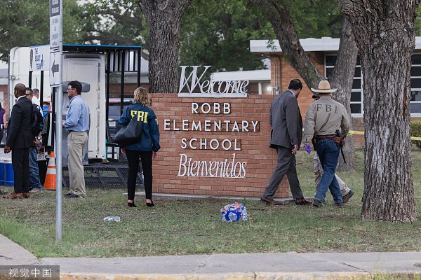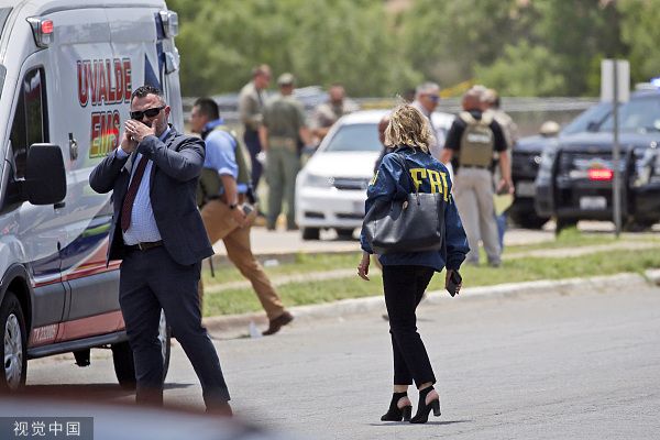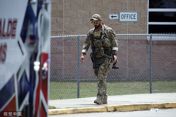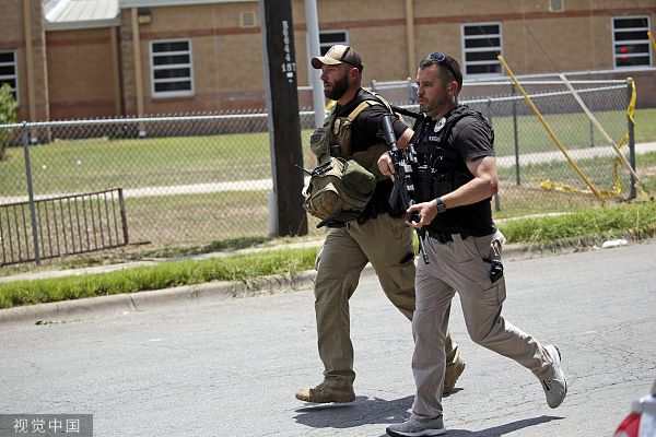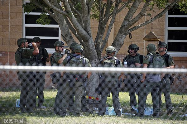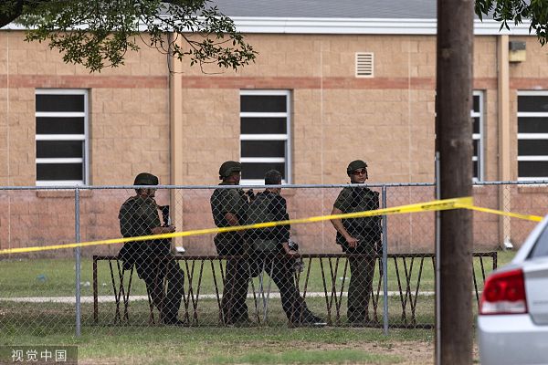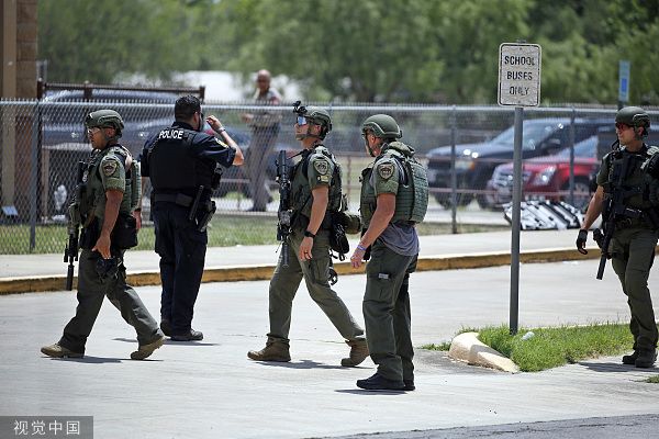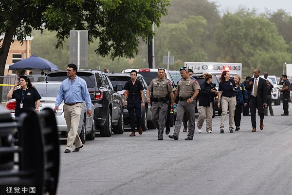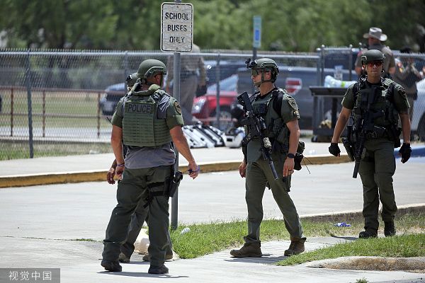 当地时间2022年5月24日,美国得克萨斯州,乌瓦尔德市罗伯小学发生的枪击事件死亡人数已上升至18人,另有3名成年人死亡。