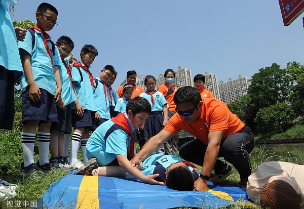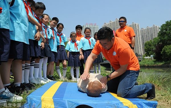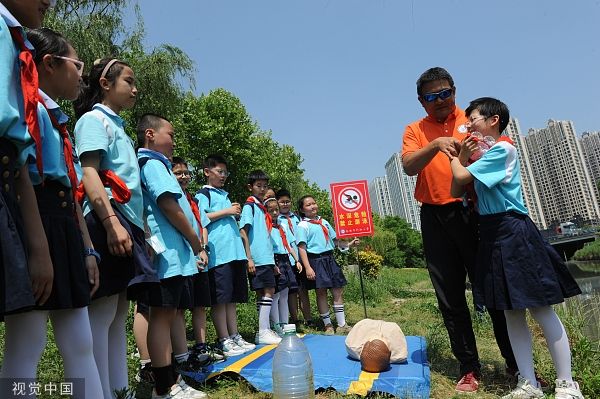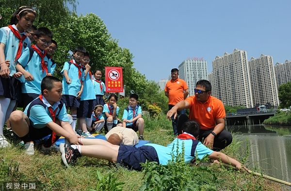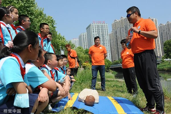 2022年5月24日,安徽省合肥市水上救生协会联合行知小学在附近的二十埠河边开设防溺水安全课堂,专业人员为孩子们进行防溺水安全警示教育,现场教授安全急救技能,提高他们的安全意识和自救能力。