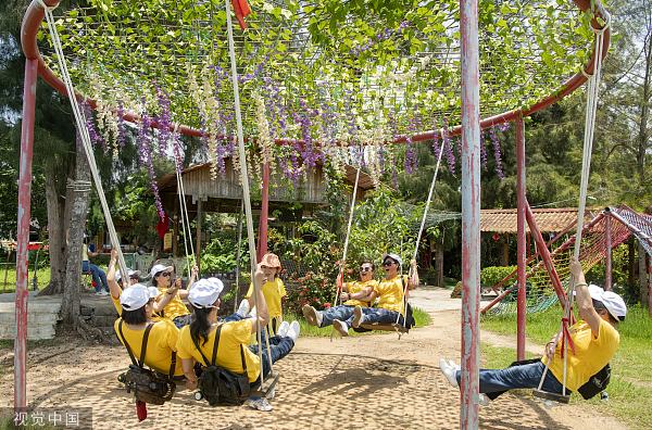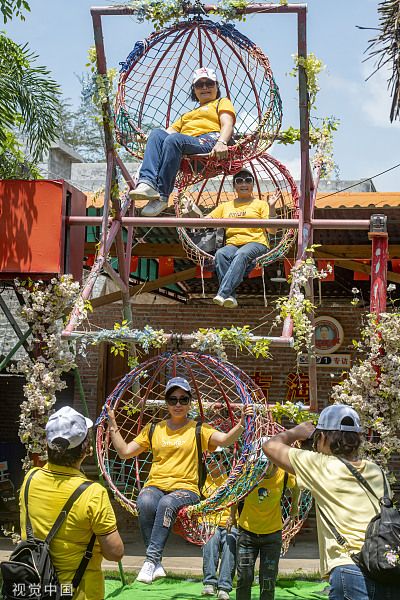 2022年5月25日,海南省临高县,众多岛民趁着好天气在岛内游,乐享初夏好时光。