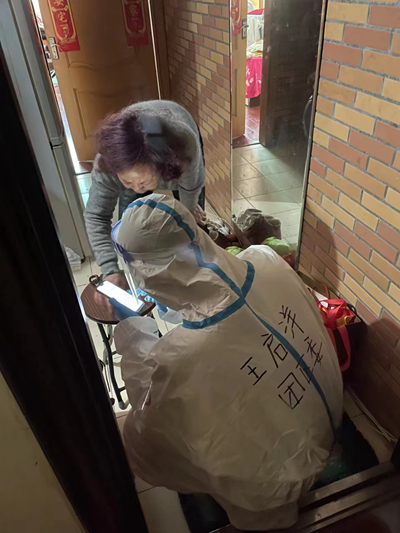从这一天开始,王启洋和其他小伙伴们一起,每天都去支援黄浦区一线居民区,帮助居民区组织核酸采样、分发包装抗原。
