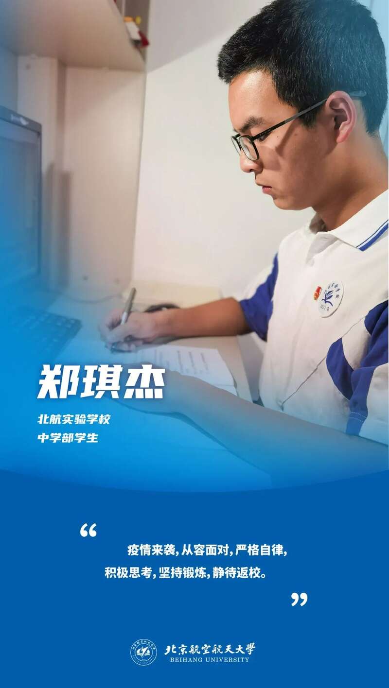 封闭管理期间,北航数万名本科生响应防疫号召,落实防控要求,不聚集、不扎堆,用线上学习的方式展现“学在北航”的刻苦品质。同学们通过spoc系统、腾讯会议、微信群聊、文献精读、研讨报告等形式接续线下学习内容,保证学习质量,按时完成课程内容。“有责任有担当,青春才会闪光。”北航本科生们用积极乐观的心态、踏实肯干的学习精神迎难而上,展现青年人在疫情时期的责任担当。