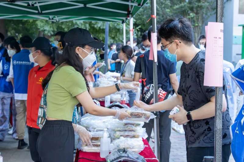 目前,两校区共有1300余名学生志愿者,担任核酸检测、应急医疗、口罩发放与佩戴提示、快递分发、校园隔离栅栏巡察等志愿服务工作。闭环系统志愿者团队协同配合、一致行动,为平安健康校园建设贡献力量。