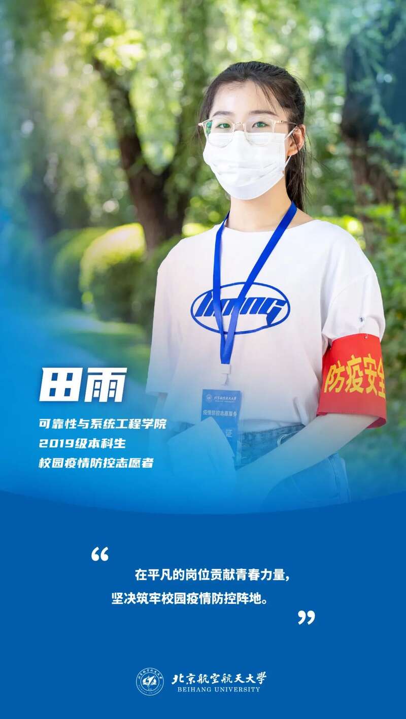 田雨作为学生志愿者,在校园疫情防控工作中冲在第一线。“有需要就行动”,是她、是志愿者们铿锵有力的承诺。自疫情防控形势严峻以来,田雨累计上岗20余天。她用一点一滴的汗水助力校园疫情防控,用志愿服务的实际行动践行青年担当。