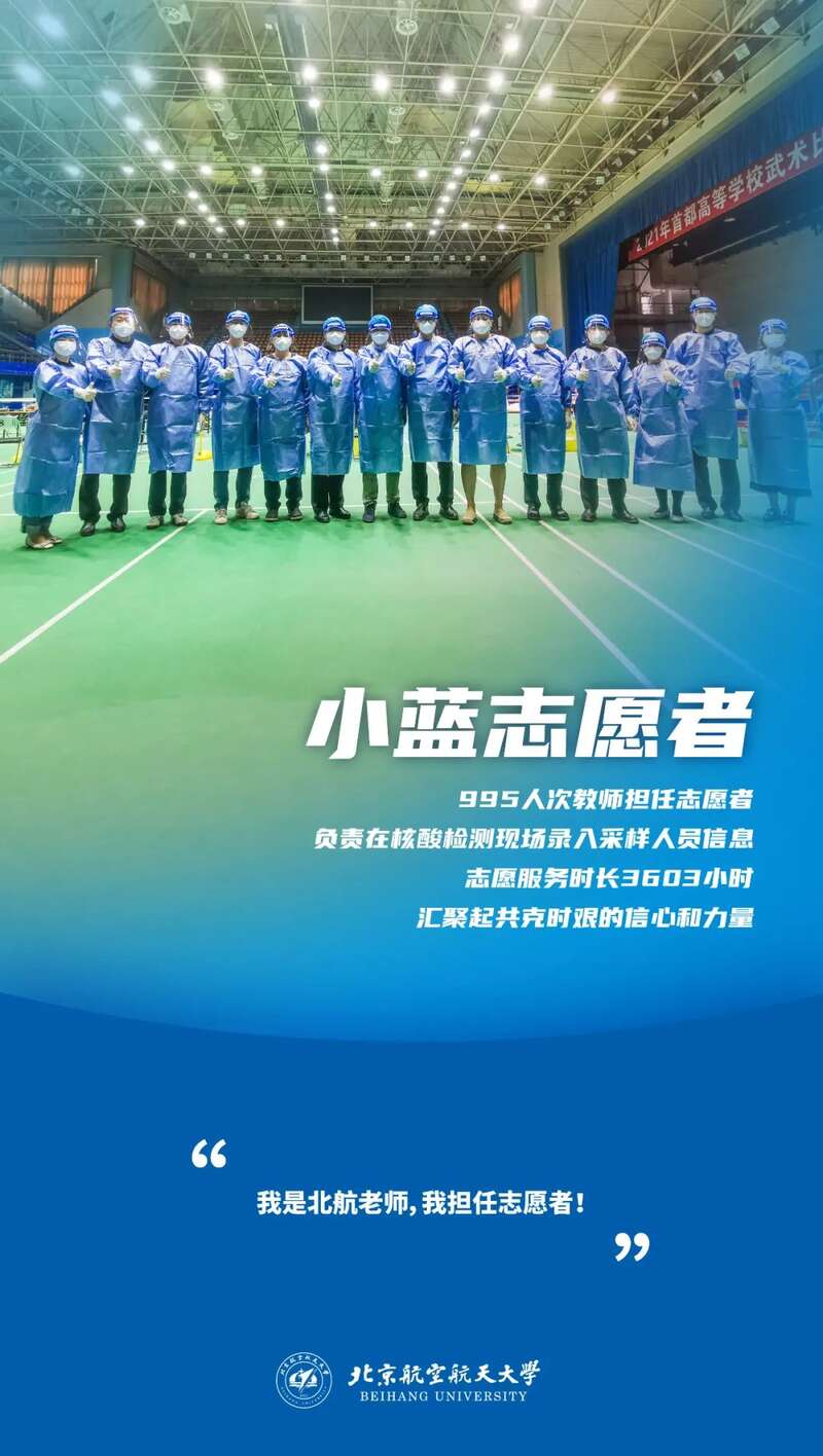 封闭管理期间,共有北航教师995人次于校内担任核酸检测志愿者,负责在核酸检测现场录入采样人员信息,总志愿服务时长达到3603小时。“哪里需要,就冲在哪里”,他们用责任与担当,汇聚起共克时艰的信心和力量。