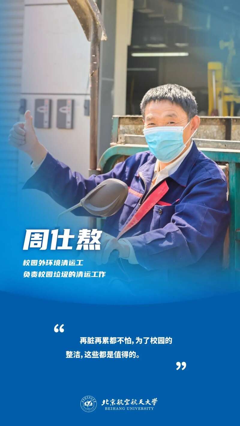 周仕熬作为一名校园垃圾清运工,每天负责将学生南区公寓楼、合一楼的垃圾运输到北区垃圾处理站。疫情期间,为落实疫情防控工作的相关要求,周师傅在运输垃圾的同时,对垃圾进行认真细致的消毒,再装车运输,最大限度降低了疫情传播风险。下班后,他还会在校园内不间断进行巡视保洁,确保校园环境的干净整洁。