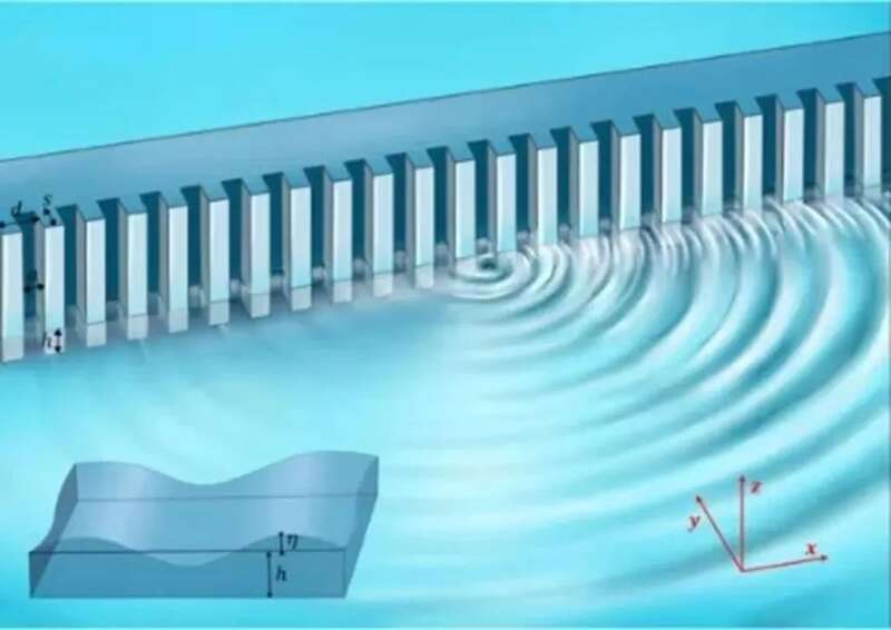 研究中,他们提出并设计了一种一维凹槽阵列,首次实现水波局域化和单向传播,并在此基础上,凝练出“负水深”和“水波极化激元”新概念,为变换流体力学提供了新的见解。