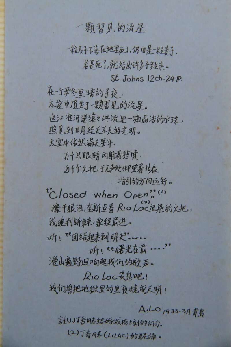 这是1941年乐于泓纪念丁香的诗作