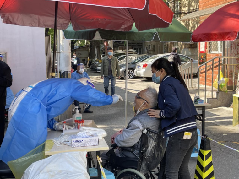 俯下身子为行动不便的居民采样