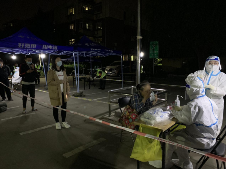 北京大学人民医院组织医务人员参与北京市大规模人群核酸筛查。医护人员奔赴西城区、通州区、朝阳区、海淀区,保质保量完成辖区数10万人口核酸采样工作。