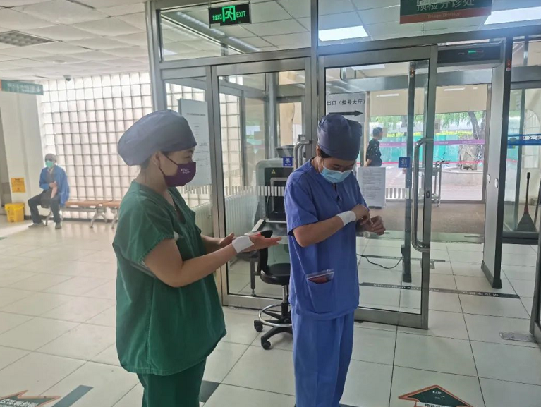 在不参加采样的时段,采样队员还要回归自己原本岗位身份,回到校医院承担原本的医护任务。而对于现在的采样人员来说,回到医院处理门急诊工作,尽管面对患者时大脑依然处于高度紧张的状态,“但工作强度比起核酸采样简直可以算是休息了”。
