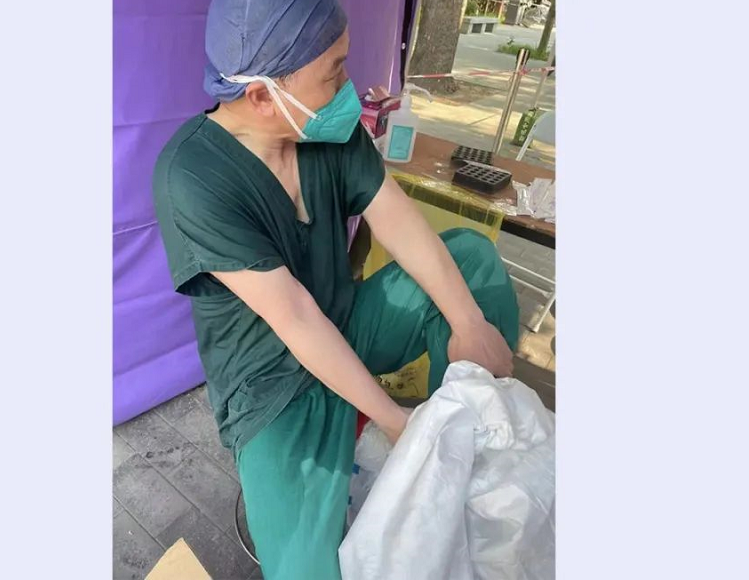 作为核酸采样队伍的场地管理者,护理部护士蔡颖楠最早到场地清点物资,最晚收拾场地离开,中午只有短短的半小时休息时间。一次刘秀冬看到,蔡颖楠在休息时默默一个人拿着饭走到角落,吃着盒饭和家人视频,含泪嘱咐家里人注意身体,叮嘱孩子要认真做作业。