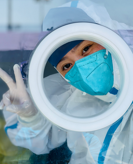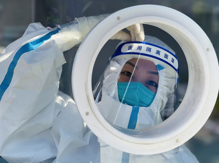 面对高强度的防疫任务,采样医护人员依然保持着一份笑对困难的乐观与顽强。