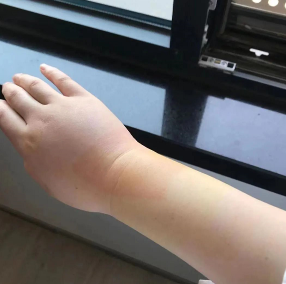 长期工作导致手臂肿大,医护人员贴上膏药止痛