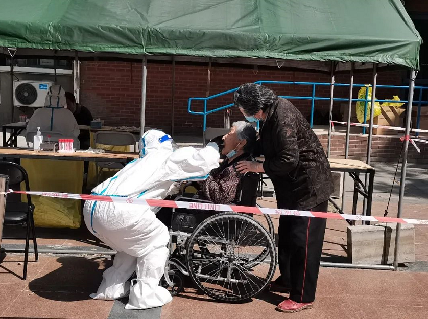 起初是居民区——4月26日至5月15日,校医院负责双清苑社区、荷清苑社区、蓝旗营社区等8个核酸采集站采样任务。医院共100余位工作人员放弃假日休息,完成了超22万人次的核酸采样任务。