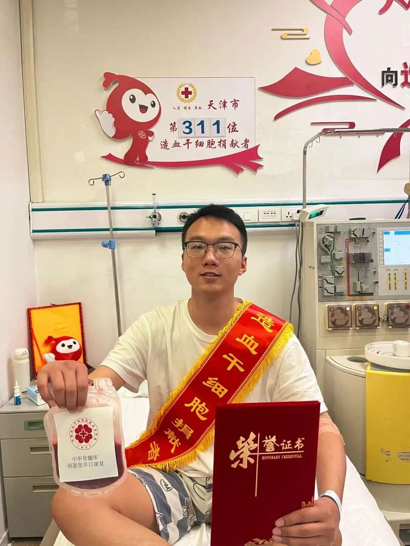 日前,天津大学药学院博士生党员孟庆昊同学在天津市第一中心医院成功捐献造血干细胞,为一名5岁的小女孩带来生的希望,在成为中华骨髓库志愿者后的第四年完成了生命力量的传递。