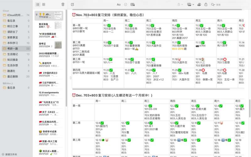 决定跨考的那天,她沉静而坚定。经过一上午的分析与思考,当天下午,张梦姣就紧锣密鼓地开始制定时间规划表,将繁重的任务切成小块。打开张梦姣的备忘录,可以看见清晰明了的计划表。做完时间规划,她确信:“从8月中旬开始,是来得及的。”