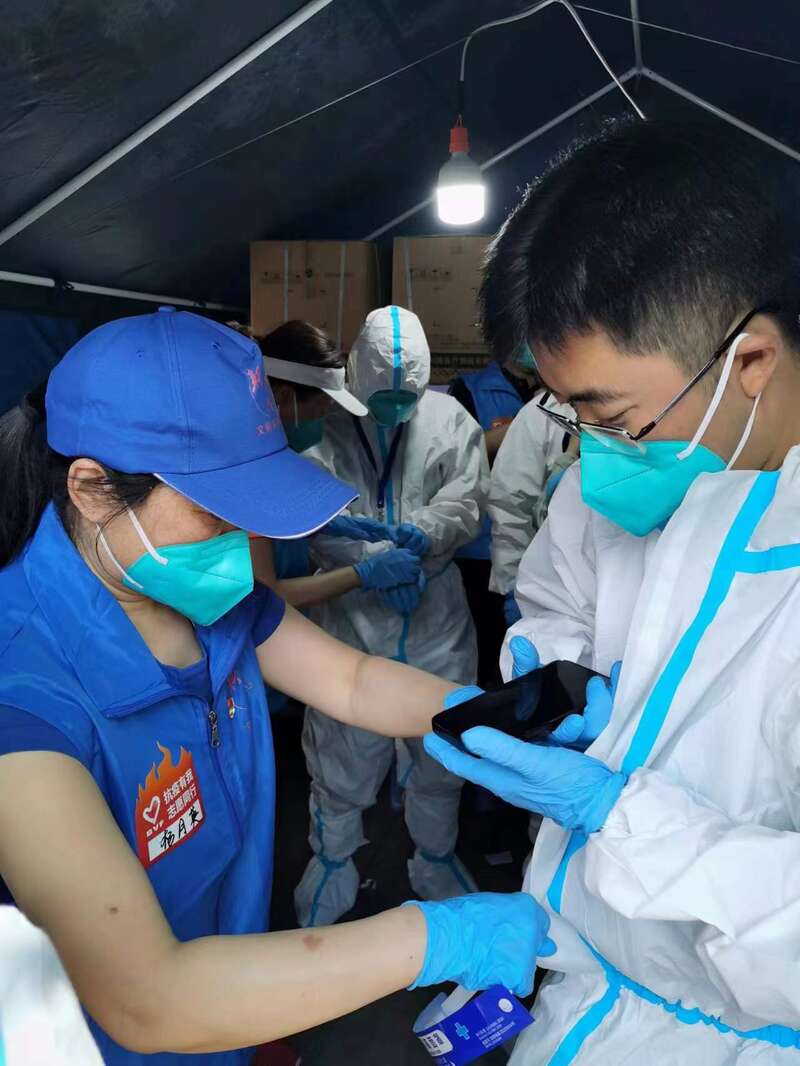 “当时报名,我也有点犹豫,孩子在家备战高考,担心自己感染再传染给孩子”,杨月英把希望报名参加志愿者的想法和女儿商量后,“孩子还是挺支持的,她学习不用太担心,也同意妈妈去做,没关系”。除了杨月英年纪稍长外,和她一起去社区支援的都是一批年轻人。