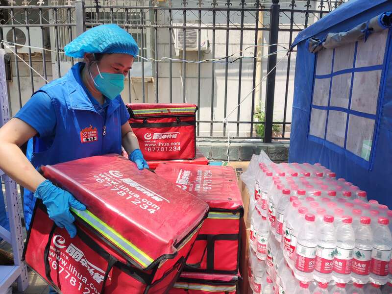 “天很热,水和饮料消耗得非常快”,杨月英记得,当天,北京气温高达36度,杨月英和同事一直在补充水和饮料,最大限度保障防疫人员的物资供应。
