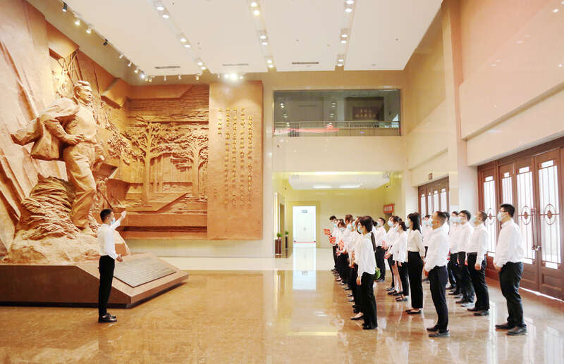 在兰考县展览馆,大家被一幅幅图片、一个个场景深深感动,纷纷表示将以实际行动贯彻习近平总书记“五个模范、五个带头”的成长指引,以焦裕禄同志为榜样,紧紧围绕地方发展大局和企业中心任务主动担纲重任,用青春奋斗热情投身能源报国和绿色发展的新征程。