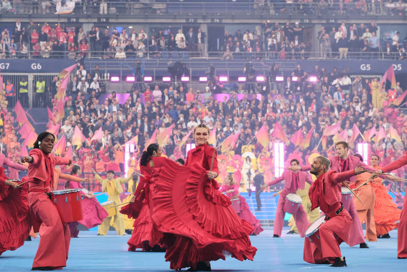 这是当地时间5月28日拍摄的欧冠决赛前的表演。新华社记者孟鼎博摄