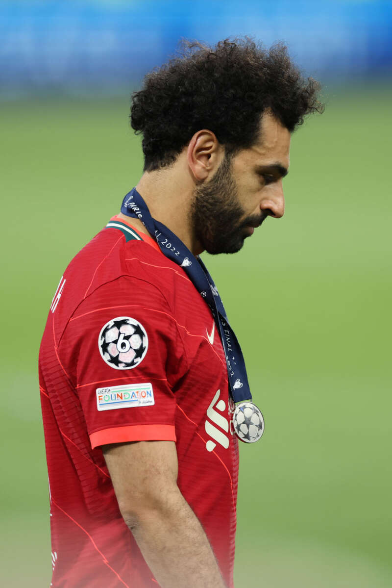 5月28日,利物浦队球员萨拉赫在颁奖仪式上。新华社记者孟鼎博摄