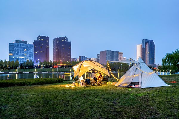 其次,需要利用科技让露营旅游装备更舒适。露营时人与自然环境紧密接触,房子变成帐篷,床变成垫子,“床”边就是草地。长期生活在城市中的人们会感到刺激,但并不舒适。这就需要采用新材料、新工艺等新科技让装备更加完善,使露营旅游成为一种享受。比如,越来越轻便且防晒防水的天幕帐篷,使露营有了舒适的“客厅”和“餐厅”;太阳能温感防潮垫、儿童游戏防潮垫使大地不再湿凉;太阳能热水袋和洗澡帐篷,使自驾过夜露营更舒适;充气浴缸使露营旅游更惬意,充气戏水池使小朋友玩得更开心;充气音乐枕、不用电的折叠按摩椅、全放松深睡折叠床等,使露营休息更完美;移动迷你厨房使露营更有生活的味道;一次性纸质带炭烧烤炉,既环保又为露营增添了美味;太阳能大容量移动电源保证了露营帐篷里迷你空调、太阳能便携冰箱等设备的用电;夜光足球使夜间踢球成为“流星表演”;太阳能充气露营灯、太阳能火把式可插地露营灯、露营天幕帐篷氛围灯等,使露营地成为直播打卡点;便携洗手片、洗碗纸等,使露营野炊卫生安全;卫星定位衣、帽、鞋、裤,可避免走失的发生;带喷雾和风扇的太阳伞,让使用者在太阳下漫步更舒适;防蚊贴、防蚊液、防蚊手环等,让露营者在夏季免受蚊虫骚扰;折叠马桶使露营不再尴尬;便携式宠物用品方便携带宠物一起去露营……