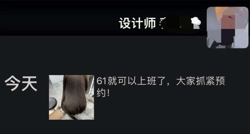 5月31日上午,中新经纬以消费者的身份拨打上海市松江区某理发店的预约电话时,接电话的是一个声音稚嫩的小女孩,“明天可以来理发。”同时能从听筒中听到一位成年男子不停和顾客确定预约时间的声音。随后,该男子也对中新经纬说6月1日可以到店理发。