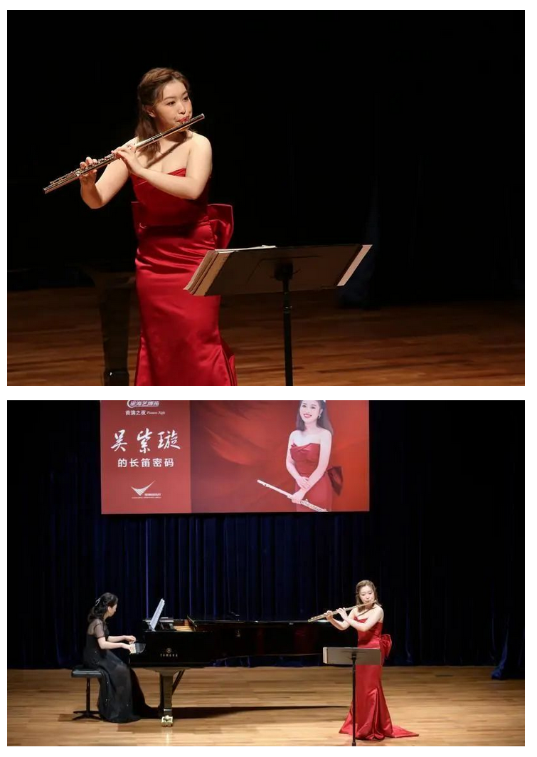 5月14日,星海音乐厅举办了一场不同凡响的长笛音乐会——吴紫璇的长笛密码。这场长笛音乐会由广州大学音乐舞蹈学院长笛演奏专业老师吴紫璇担任“女主角”和“编剧” , 这是她回国后首场音乐会,也是星海艺博苑2022年全新推出的“首演之夜”系列的第一场音乐会。其中她演奏的比利时名曲《本弗努塔组曲》不仅由她亲自改编,也是在中国的首演。