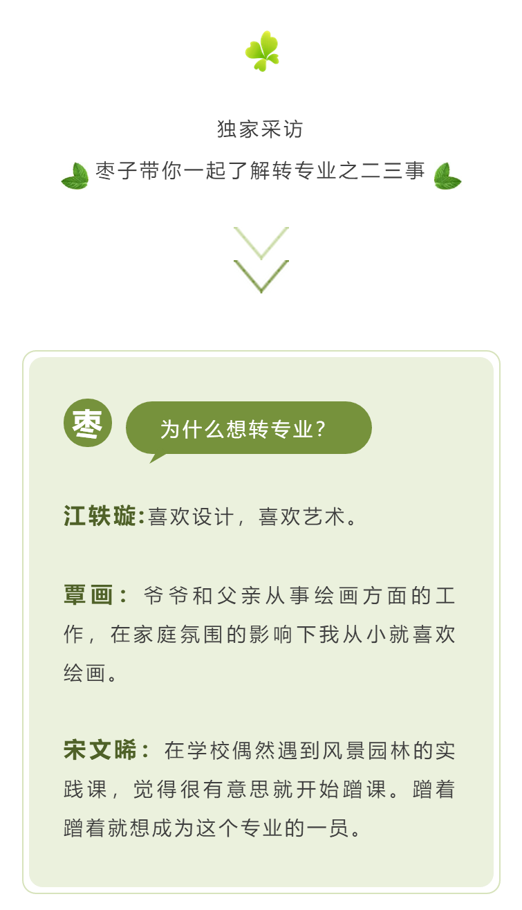 “大部分人都是为了兴趣和热爱选择的转专业。在转专业后,有的人把爱好变成了专业,有的人在深入认识学习专业后,反而失去了原有的热爱。”