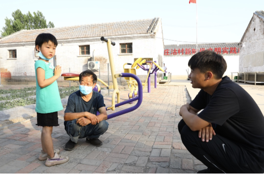 青年委员兰富旭与本村小朋友交谈,了解她的近况和需求