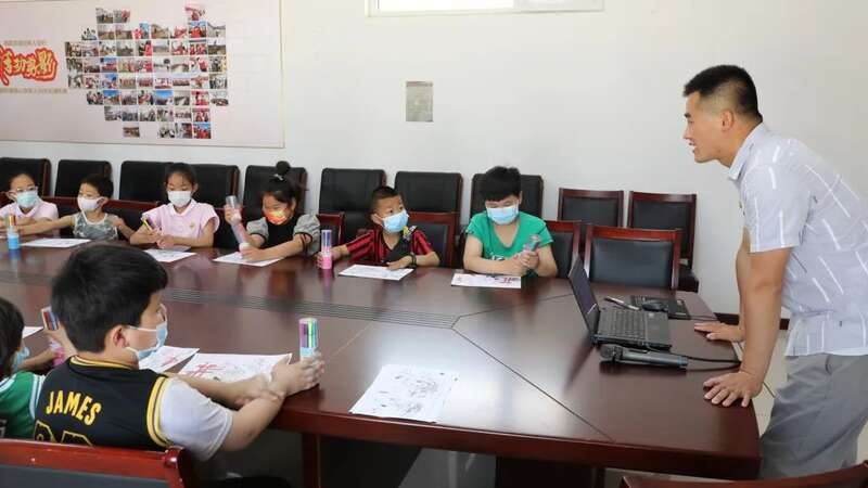 袁文飞开展“后疫情时代”青少年活动,教小朋友绘画