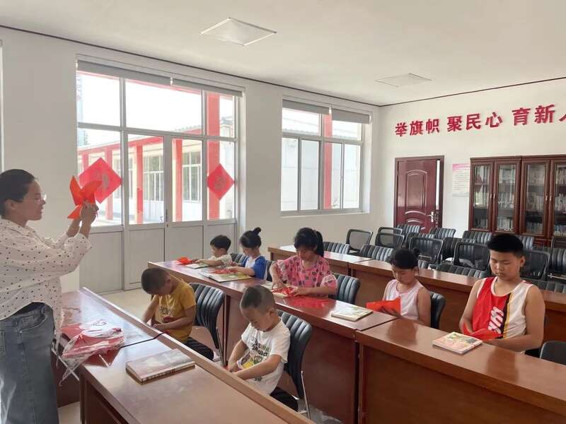 方家庄镇小杜庄村党支部书记兼村委会主任 裴学荣教本村青少年折小风车