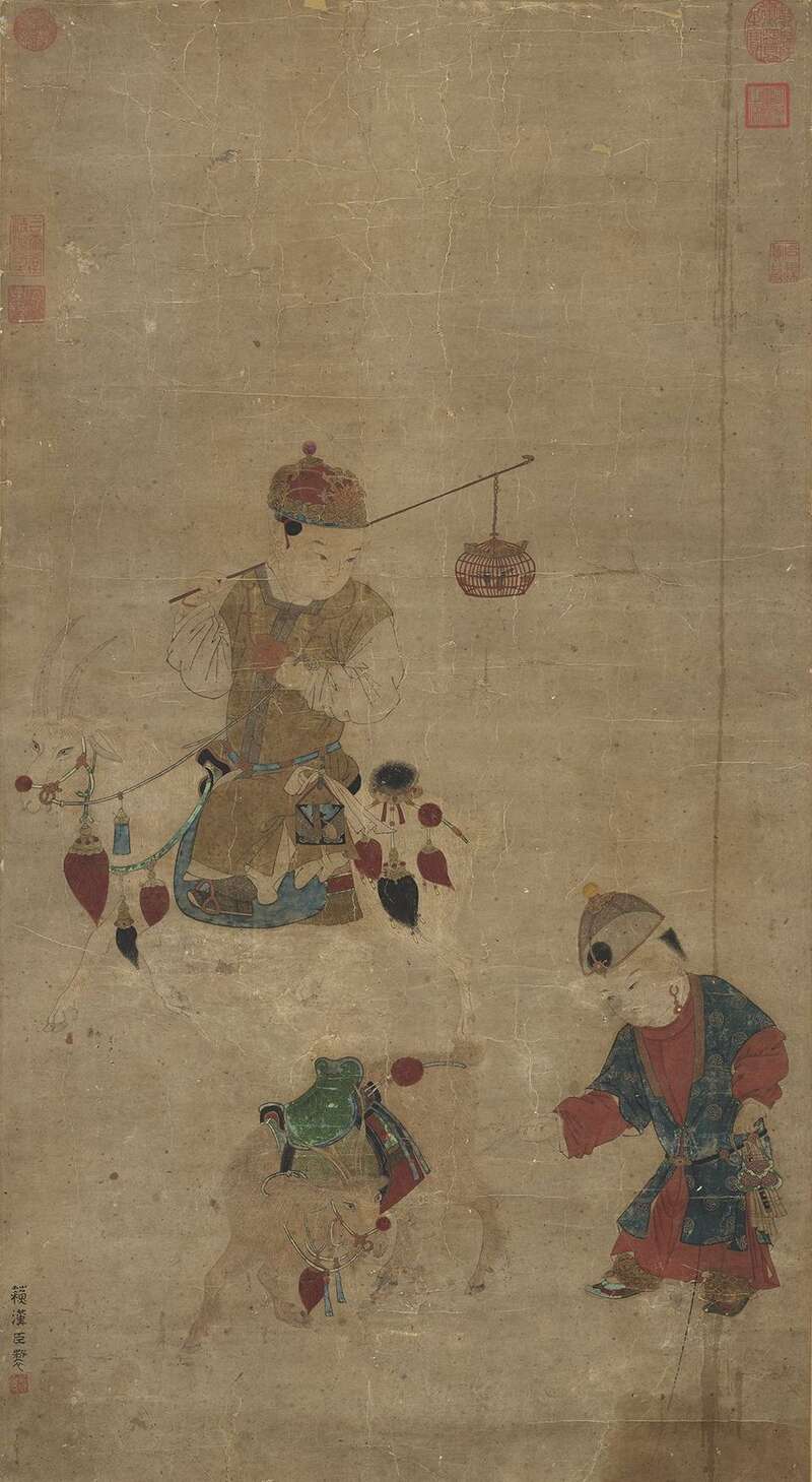 元人 戏婴图 轴(局部) 台北故宫博物院藏
