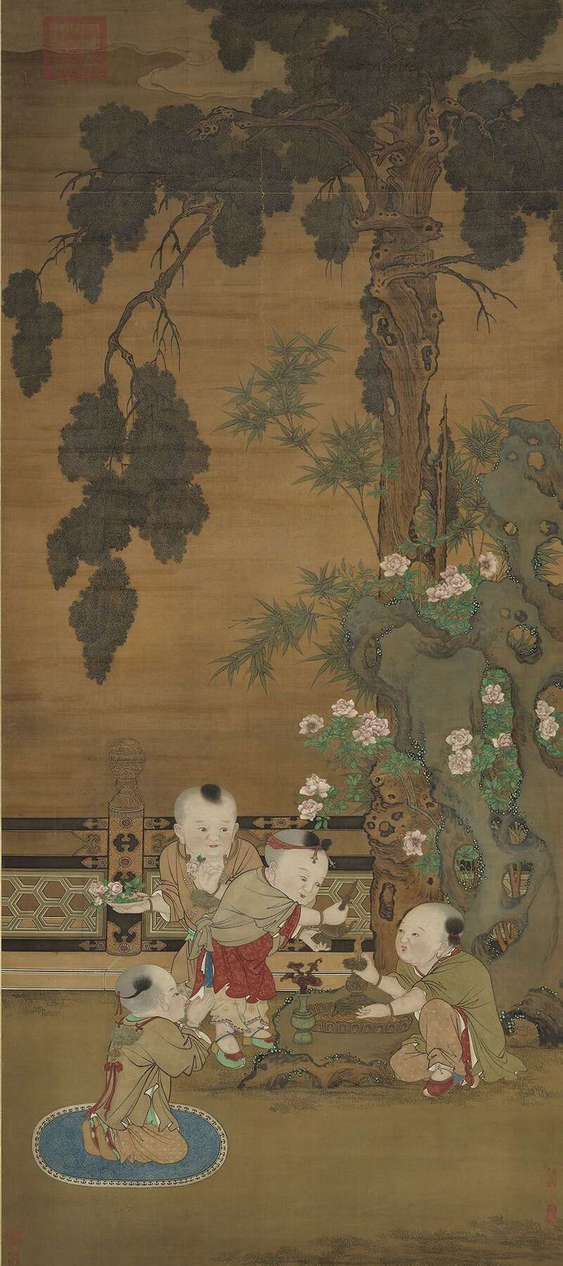 元 乔仲常 闲庭婴戏 本幅选自台北故宫博物院藏“集珍寿古册”