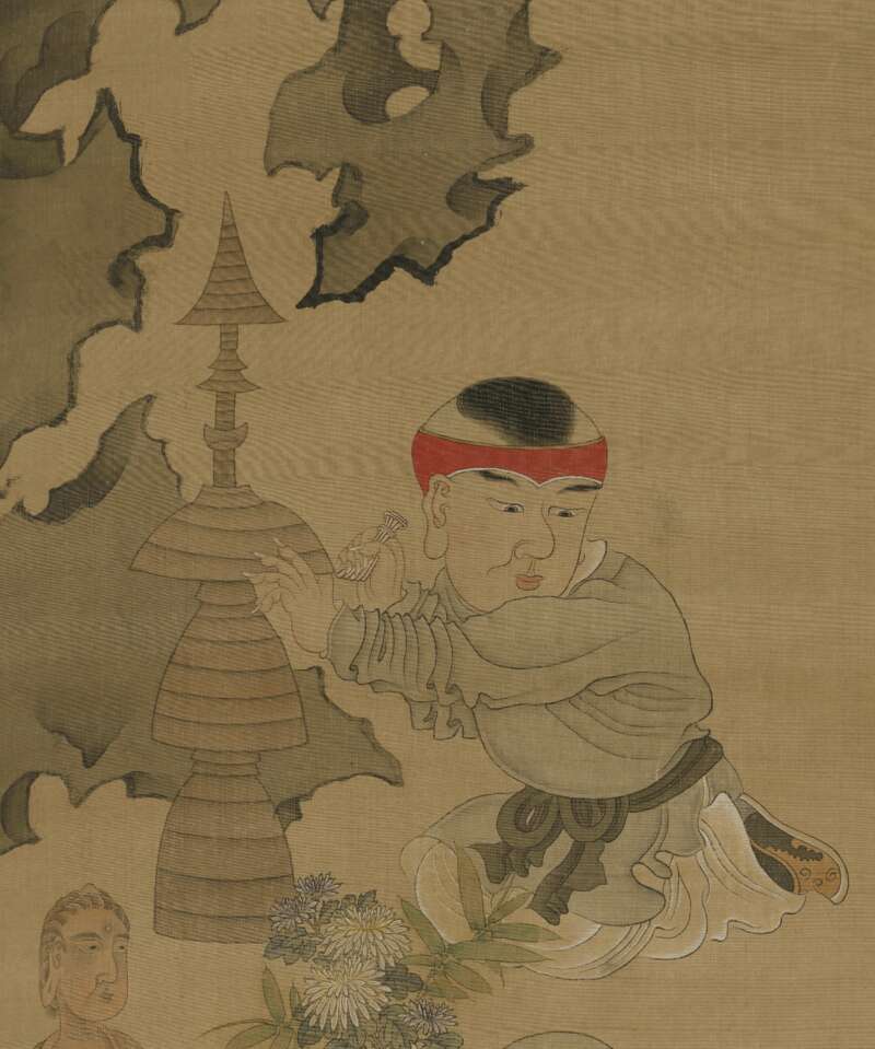 明 陈洪绶 童子礼佛图 轴(局部) 故宫博物院藏