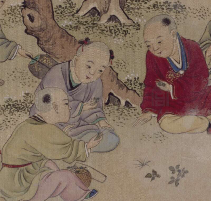 清 婴戏图册之斗草图(局部) 故宫博物院藏