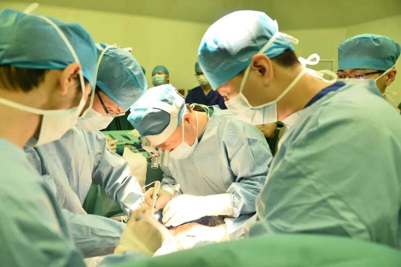 何晓顺教授(中)正在进行无缺血移植手术