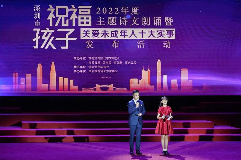 中国青年报客户端深圳5月31日电(中青报·中青网记者 武欣中)在第72个“六一”国际儿童节来临之际,深圳市“祝福孩子”诗文朗诵暨2022年度“关爱未成年人十大实事”发布活动在深圳会堂举行。“传承红色基因青少年教育活动“、“家教伴成长行动”等优秀项目入选本年度“关爱未成年人十大实事”。