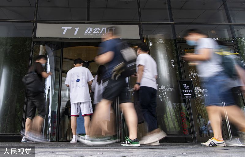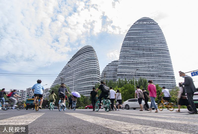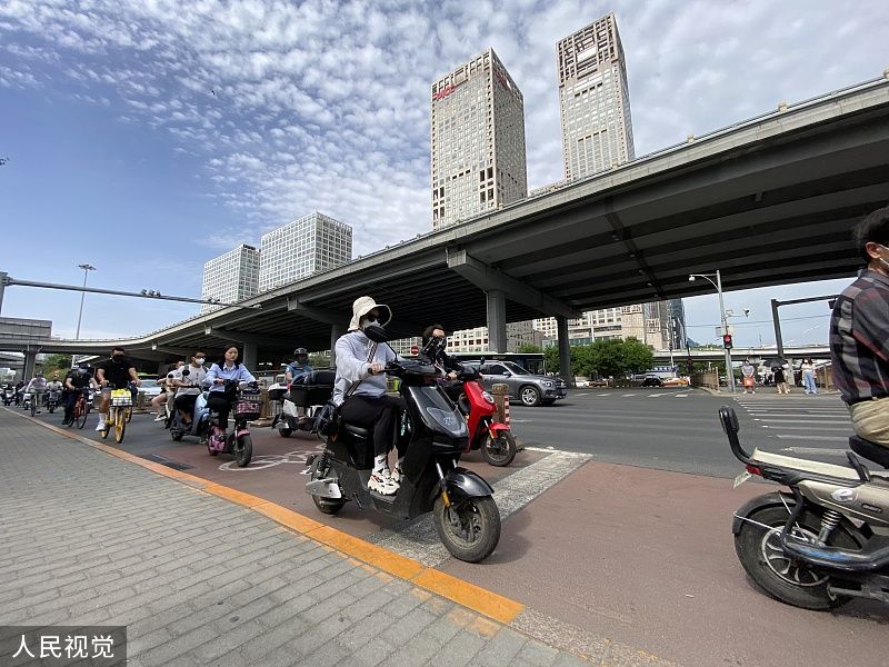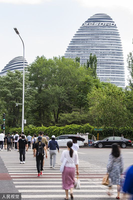 2022年5月31日,北京市朝阳区,上班族出行上班。5月30日下午,北京市朝阳区副区长杨蓓蓓在新冠肺炎疫情防控工作发布会上介绍,朝阳区除封控区和管控区外,由居家办公调整为正常上班。