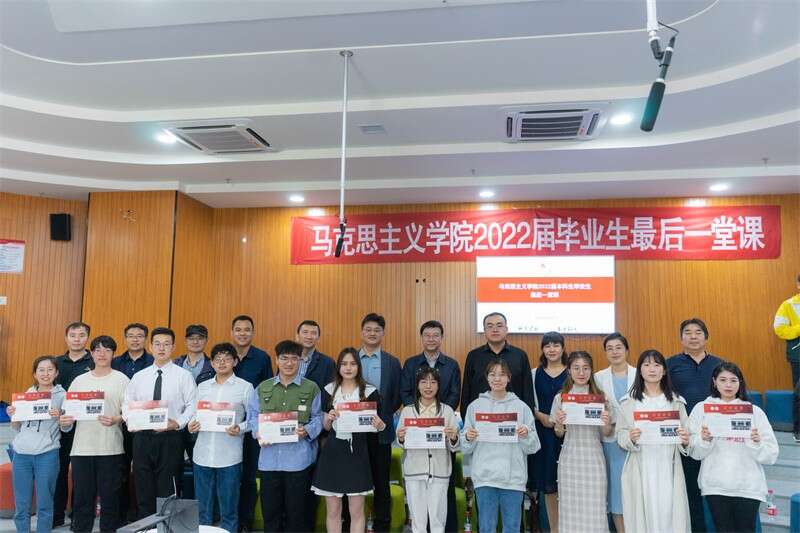 5月27日,兰大马院相关领导、教师代表、团学组织负责人汇聚一堂一起为毕业生上最后一堂“大思政课”。课堂上,毕业生深情回忆了4年大学生活的点点滴滴,以“初识·登攀·致谢”为主线,综合了朗诵、歌曲串烧多种表演形式,展示了2022届毕业生奋发有为、昂扬向上的大学生活和青春故事,诠释了2022届毕业生青春报国、不负韶华的坚定信念和使命担当。