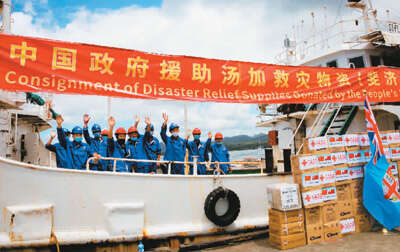 1月24日,在斐济首都苏瓦的渔船码头,运送中国政府援助汤加救灾物资的中水集团公司渔船准备起航。 新华社记者 张永兴摄