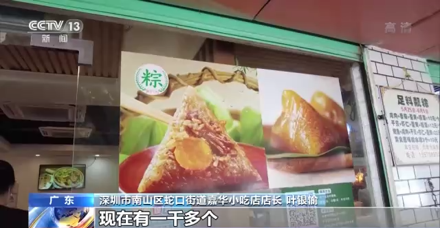 深圳市南山区蛇口街道嘉华小吃店店长 叶银愉:我们把这个消费券发到朋友圈,我们的粽子一开始一天卖一两百个,现在有一千多个。