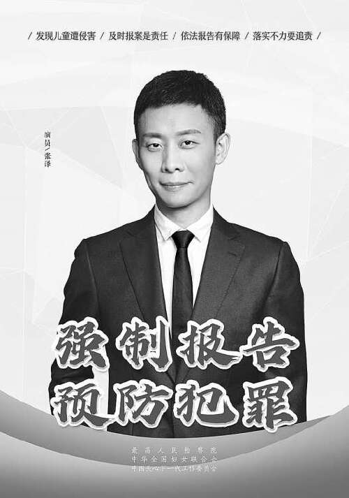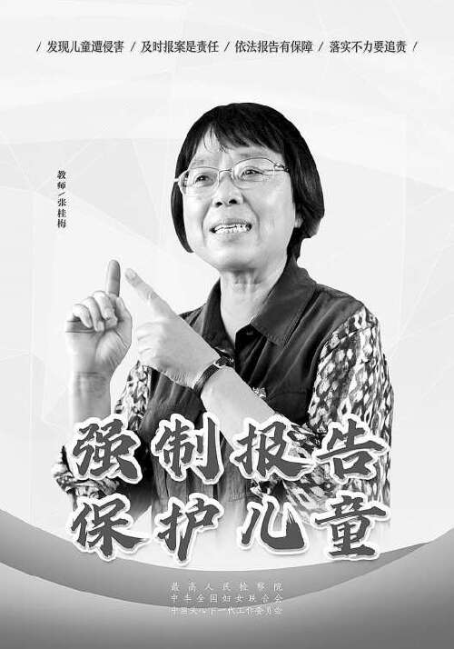 5月27日,最高人民检察院、中华全国妇女联合会、中国关心下一代工作委员会共同发布了一组《强制报告》海报,“七一勋章”获得者、全国优秀教师张桂梅,中国工程院院士李兰娟和中国电影金鸡奖获得者、第五届全国中青年德艺双馨文艺工作者张译齐出镜,为侵害未成年人案件强制报告制度代言。