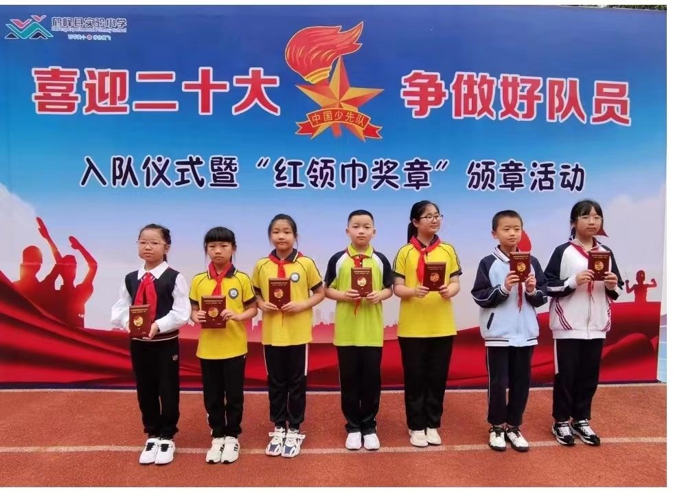 鹤峰县实验小学颁发“红领巾奖章”一星章。(团恩施州委供图)