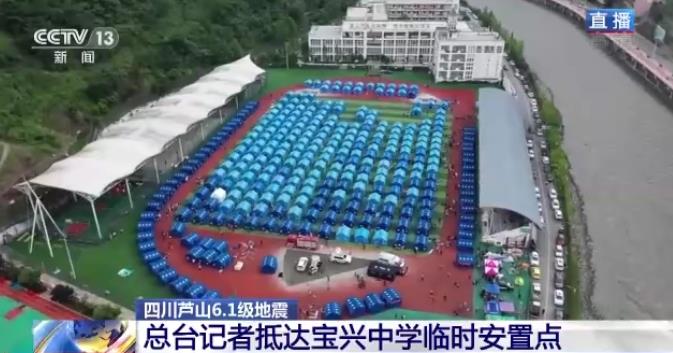 总台记者抵达宝兴中学临时安置点
