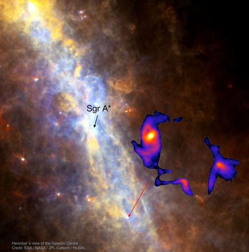 首次“看见”的原恒星盘在银河系中心示意图(红色箭头)。(受访者供图)