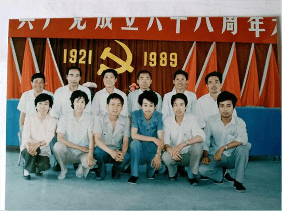 1989年王勇(前排左三)参加机关党团支部庆七一活动后人员合影。